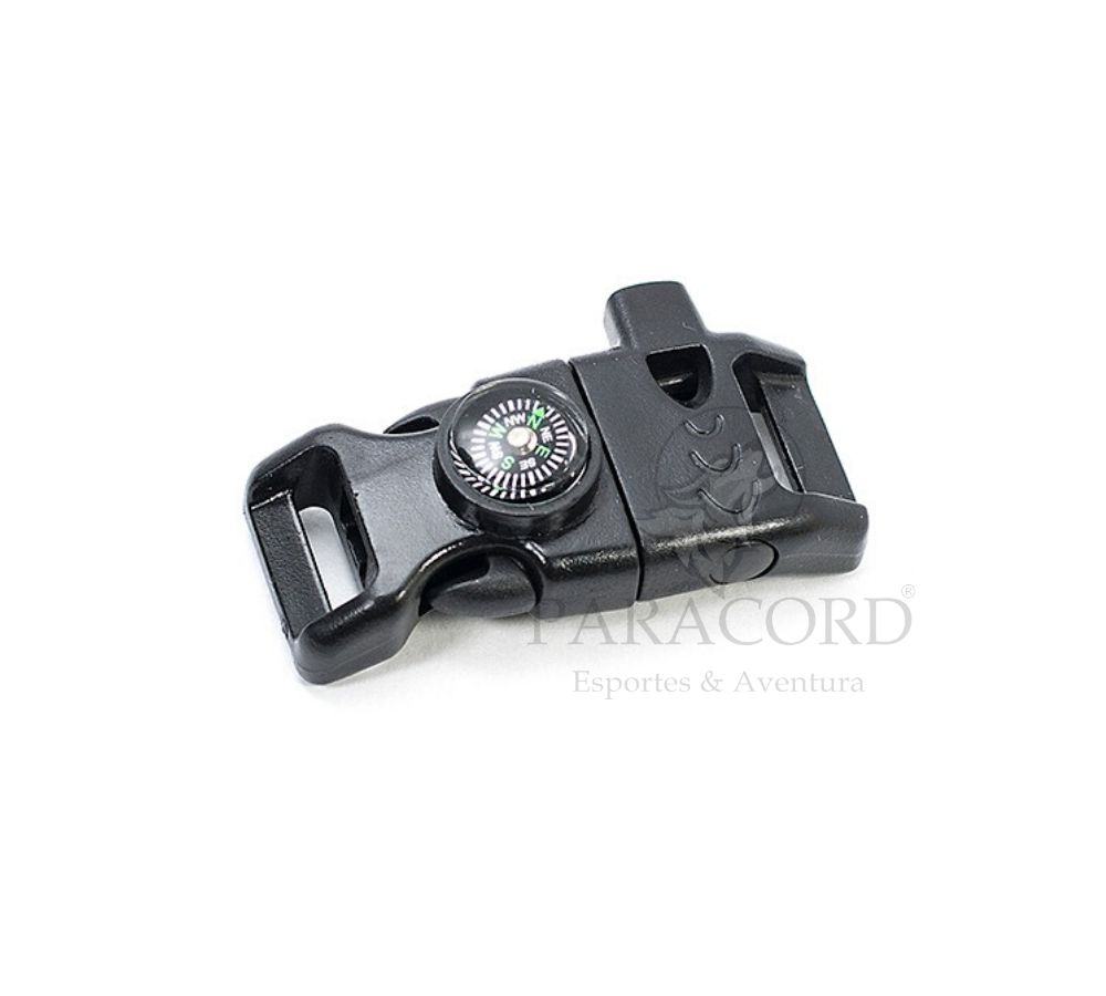 É ideal para montagem de pulseira de sobrevivência, com 4 funções extras: apito, bússola, pederneira e riscador.